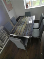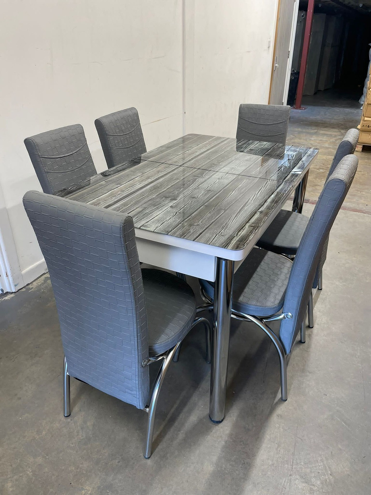 The Rusty Grey Turkish Style Dining Table & Chair Set is a perfect blend of rustic charm and contemporary elegance, making it a stunning centerpiece for any modern or traditional dining space.